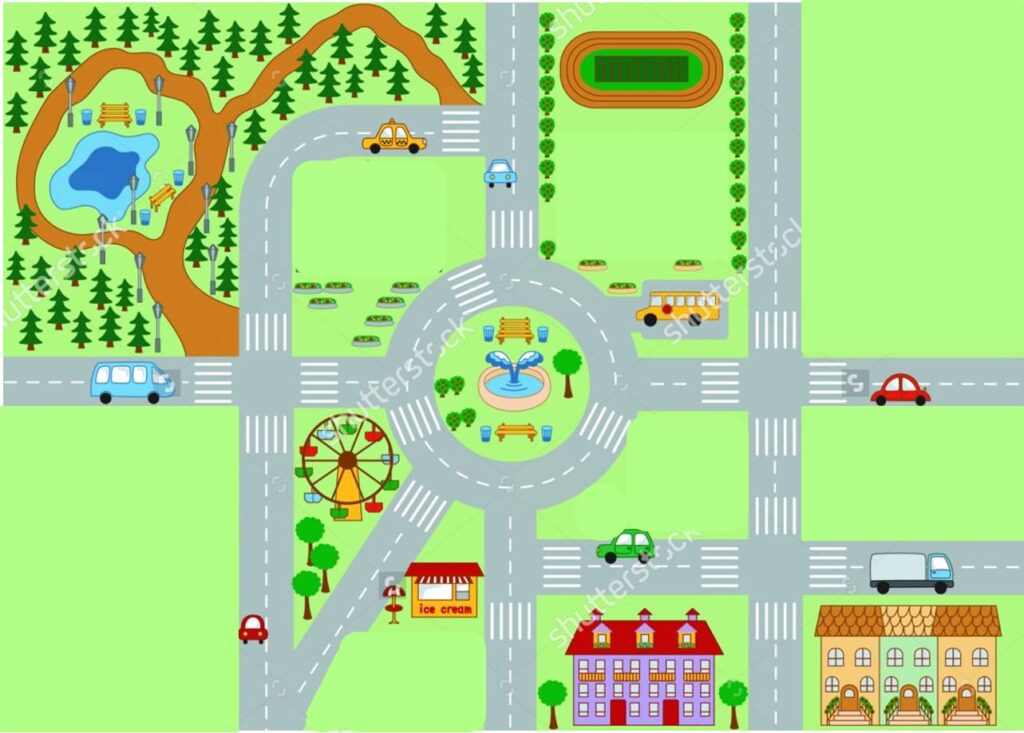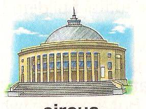 На дошці ви бачите карту. Але вона пуста, бо на ній не вистачає будинків. Зараз я зачитаю вам речення і вам необхідно здогадатися про яку будівлю йде мова. Ви піднімаєте руку, говорите відповідь і приклеюйте будівлю до карти.